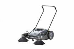 手推式掃地機 ,一種灰黑色外殼,后面是可折疊的推動桿,重量在27kg,設計精巧,手推式掃地機清掃不需要電動力,只需要推著行走便可將垃圾輕松回收到垃圾箱里。 前后的掃刷可以...