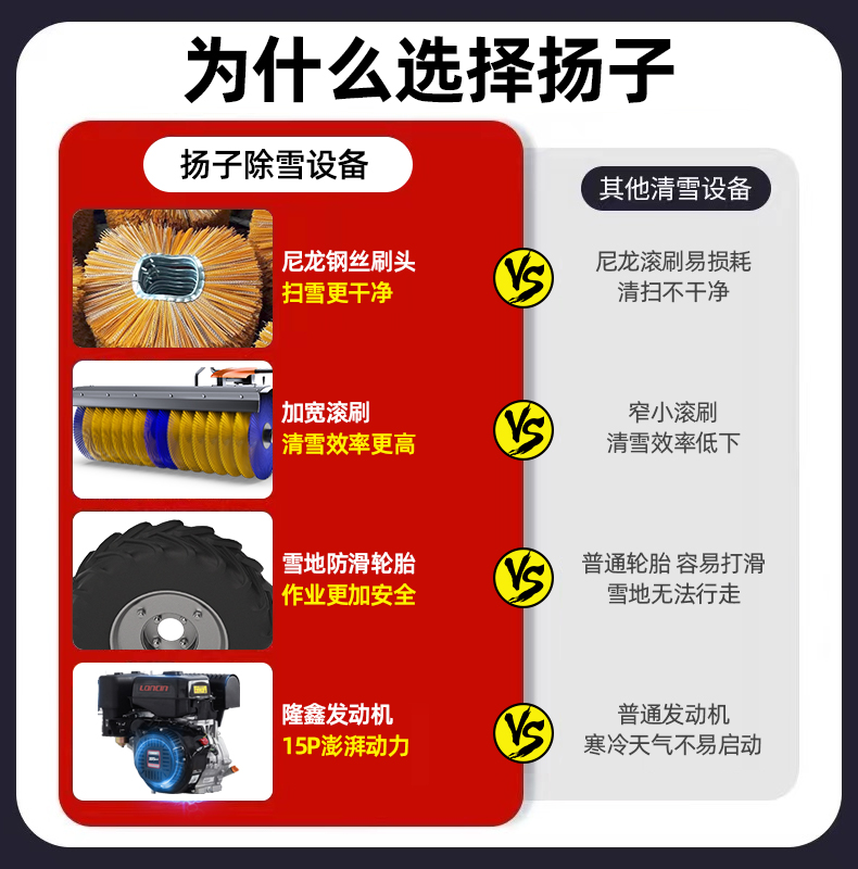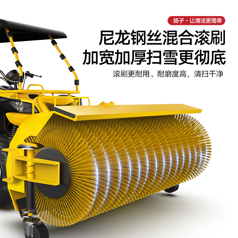 揚(yáng)子YZ-SXJ003駕駛式掃雪機(jī)加寬加厚掃雪更徹底,耐磨尼龍鋼絲混合滾刷持久更耐用,可調(diào)節(jié)檔位操作更簡單