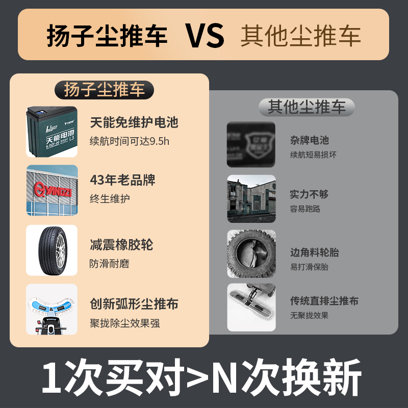 揚子塵推車YZ-CTC1,商場、酒店、工廠等多場景適用,騎著車子保潔省時省力更省人工,加壓設計頑固污漬清潔更徹底。