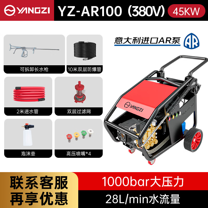 揚子高壓清洗機YZ-AR 工業(yè)用除銹除油漆車間清洗機,進口AR泵高性能耐高壓,定制高壓管柔韌耐用高硬度不漏水,感應系統(tǒng)關槍停機。