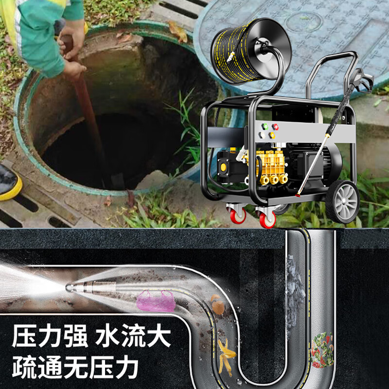 自吸/水龍頭清洗更方便,30-100米定制防爆鋼絲管,專門針對各種口徑大小得管道,可疏通50-800mm管徑