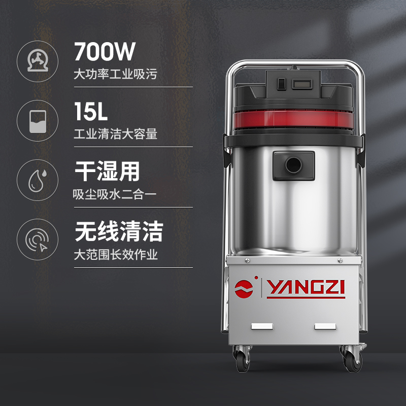 揚(yáng)子C1/700W工業(yè)吸塵器適用場(chǎng)景廣泛干濕兩用,多重過濾遠(yuǎn)離二次污染,雙電機(jī)散熱吸力更持久。